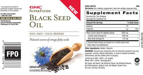 GNC SUPERFOODS BLACK SEED OIL 90 Softgel Capsules |